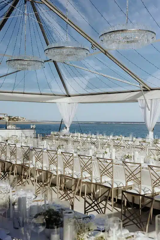 Luxury tent interiors feature chic lounge areas with plush seating, creating inviting spaces for guests to relax and socialize. Event planners carefully arrange comfortable sofas and armchairs around stylish coffee tables, incorporating soft lighting from candles to set a cozy ambiance. Artful touches, such as carefully curated sculptures or paintings, add sophistication to the space. Plush mats and rugs define seating areas, while retractable awnings provide shade and protection from the elements, ensuring guest comfort throughout the event.