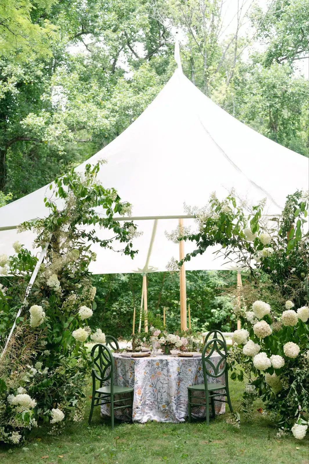 | Vintage Garden Party | Wrought Iron Furniture | Floral Centerpieces |